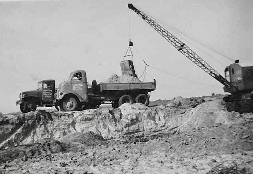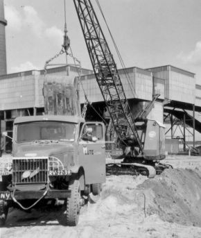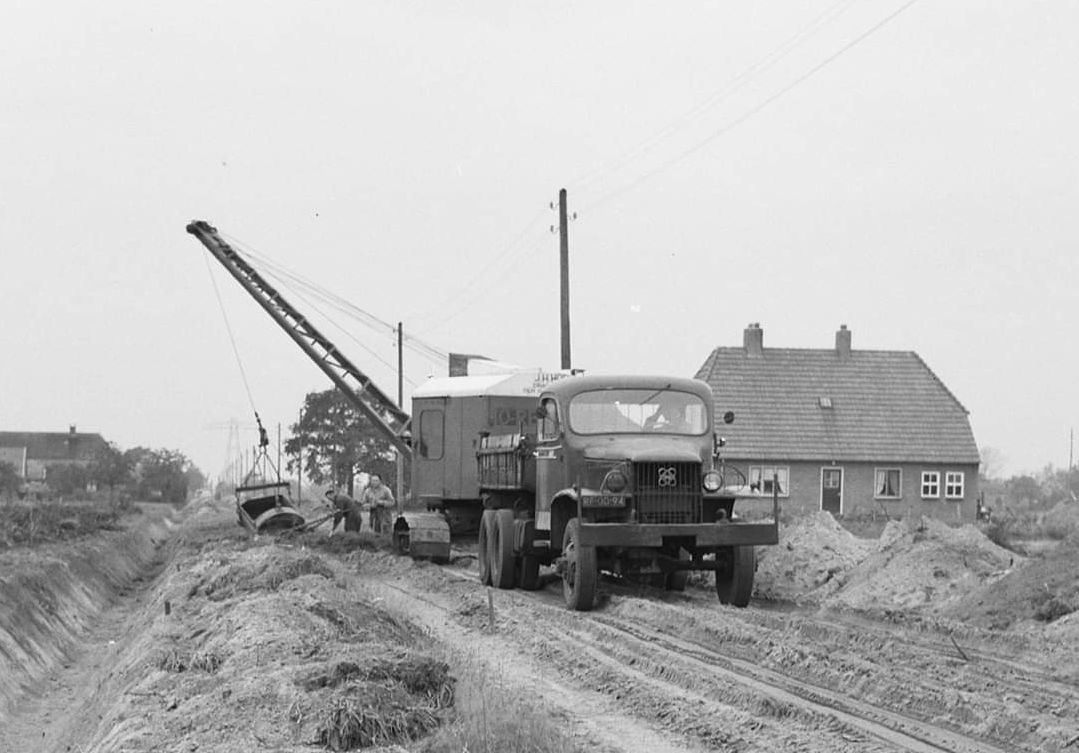 Dragline (Orenstein en Koppel?) laadt GMC in ENKA bouwput (archief Henk Veenendaal, onder mijn aandacht gebracht door Henk Jansen).