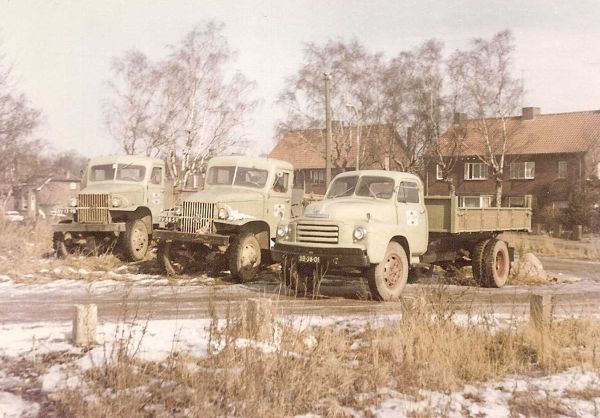(met dank aan Wilma de Werd); rechts een GMC met Perkins diesel en, niet ongebruikelijk, ingebouwde