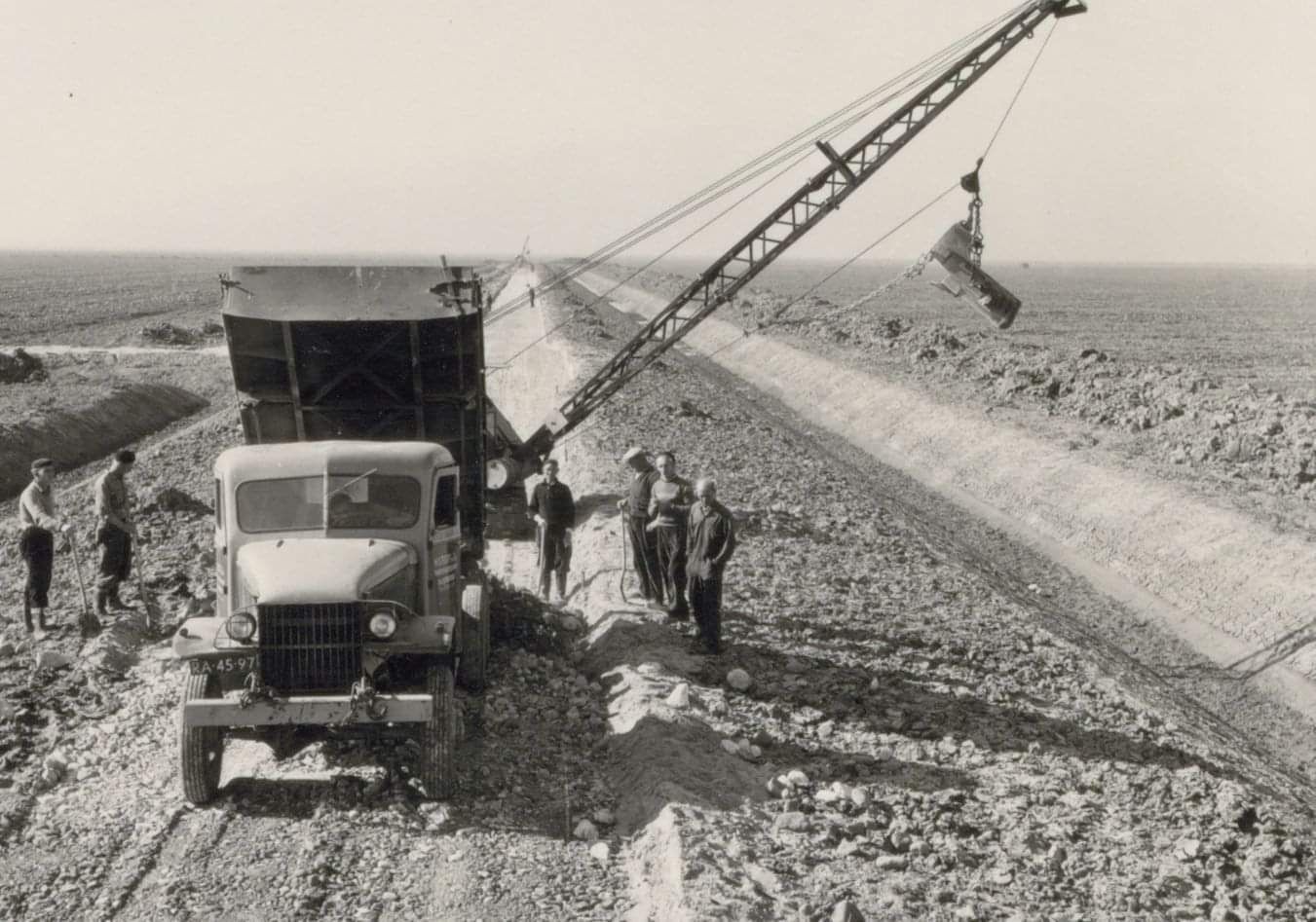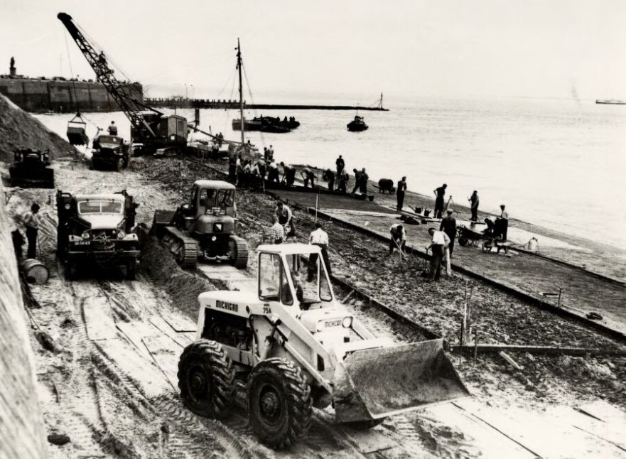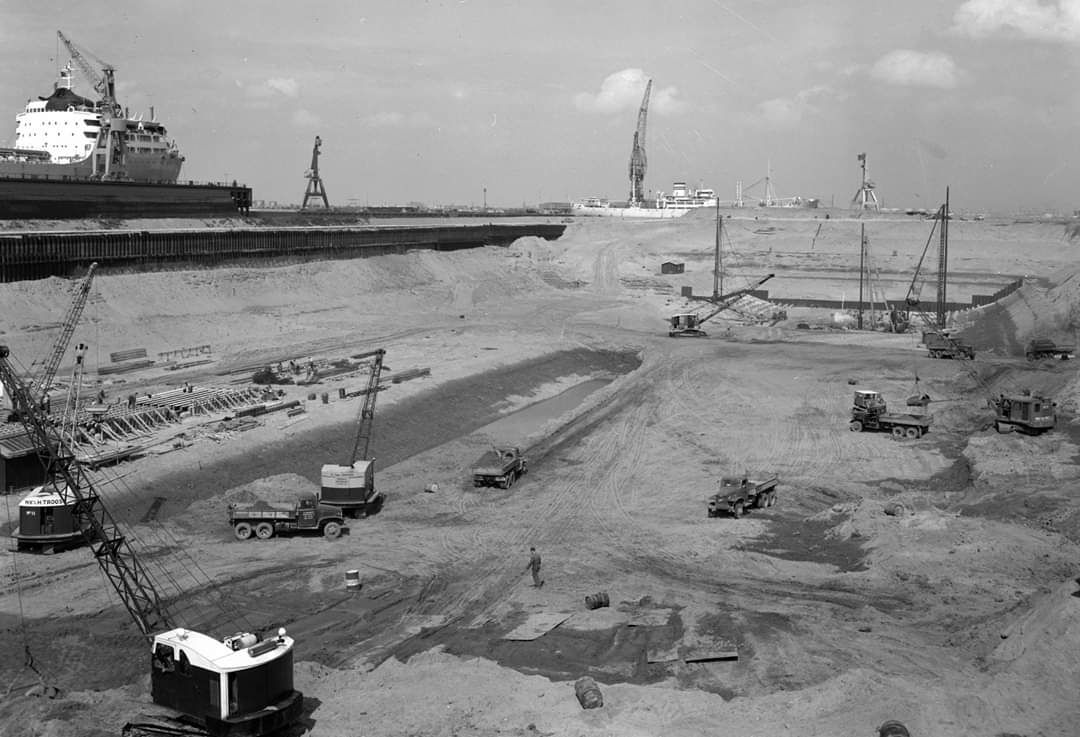 Twee kippers van Jac Caron bij aanleg van Volkeraksluis in Willemstad (met dank aan Henk Jansen voor attendering).