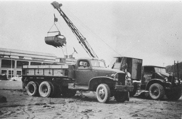 op de achtergrond), de laatste foto laat nog een GMC kipper met lier zien (met dank aan Anton de Later