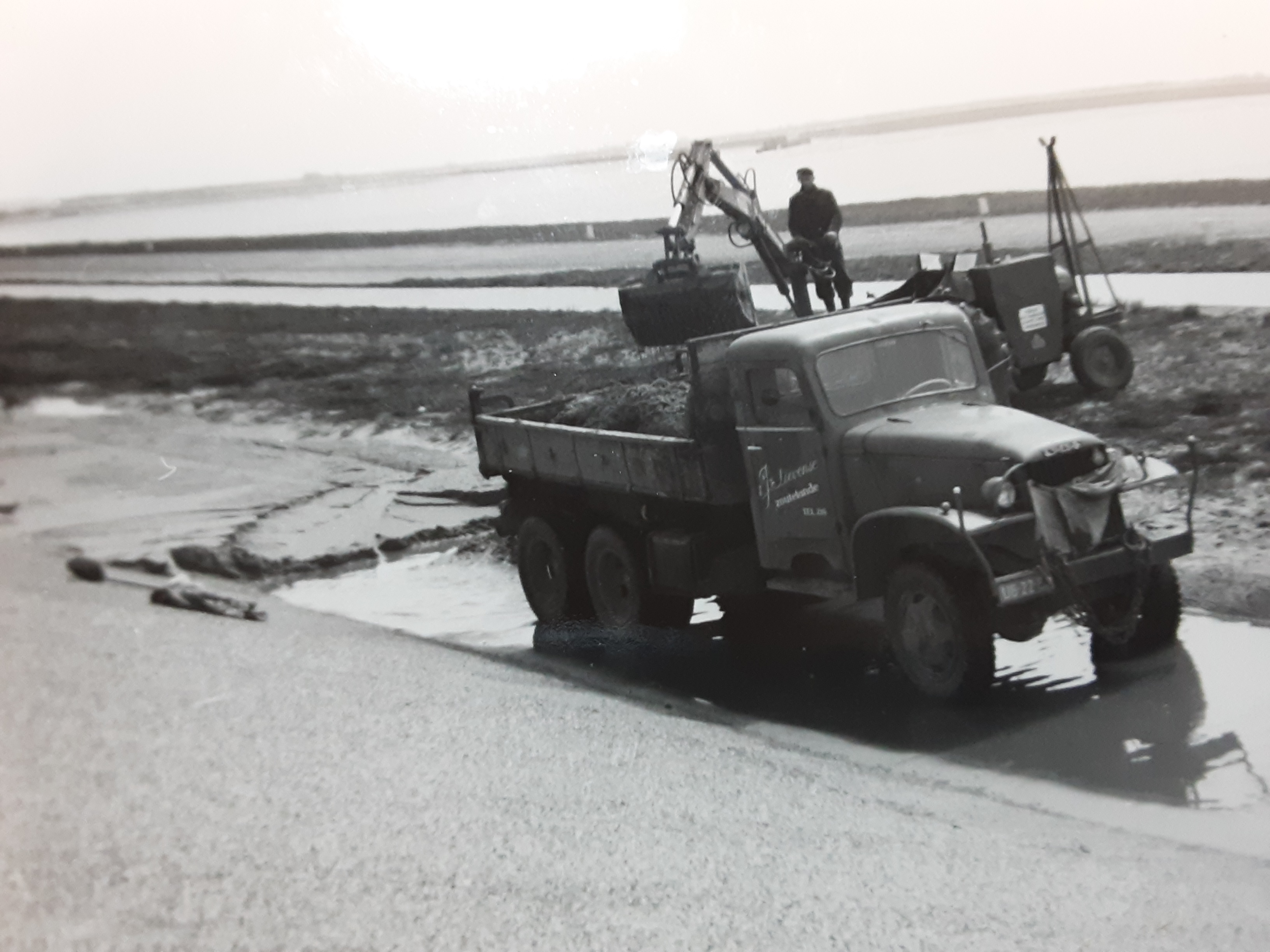 GMC's aan het werk in opdracht van Van Oord Werkendam (archief Louis van Telgen vanuit Zeeuws Archief, onder mijn aandacht gebracht door Henk Jansen).
