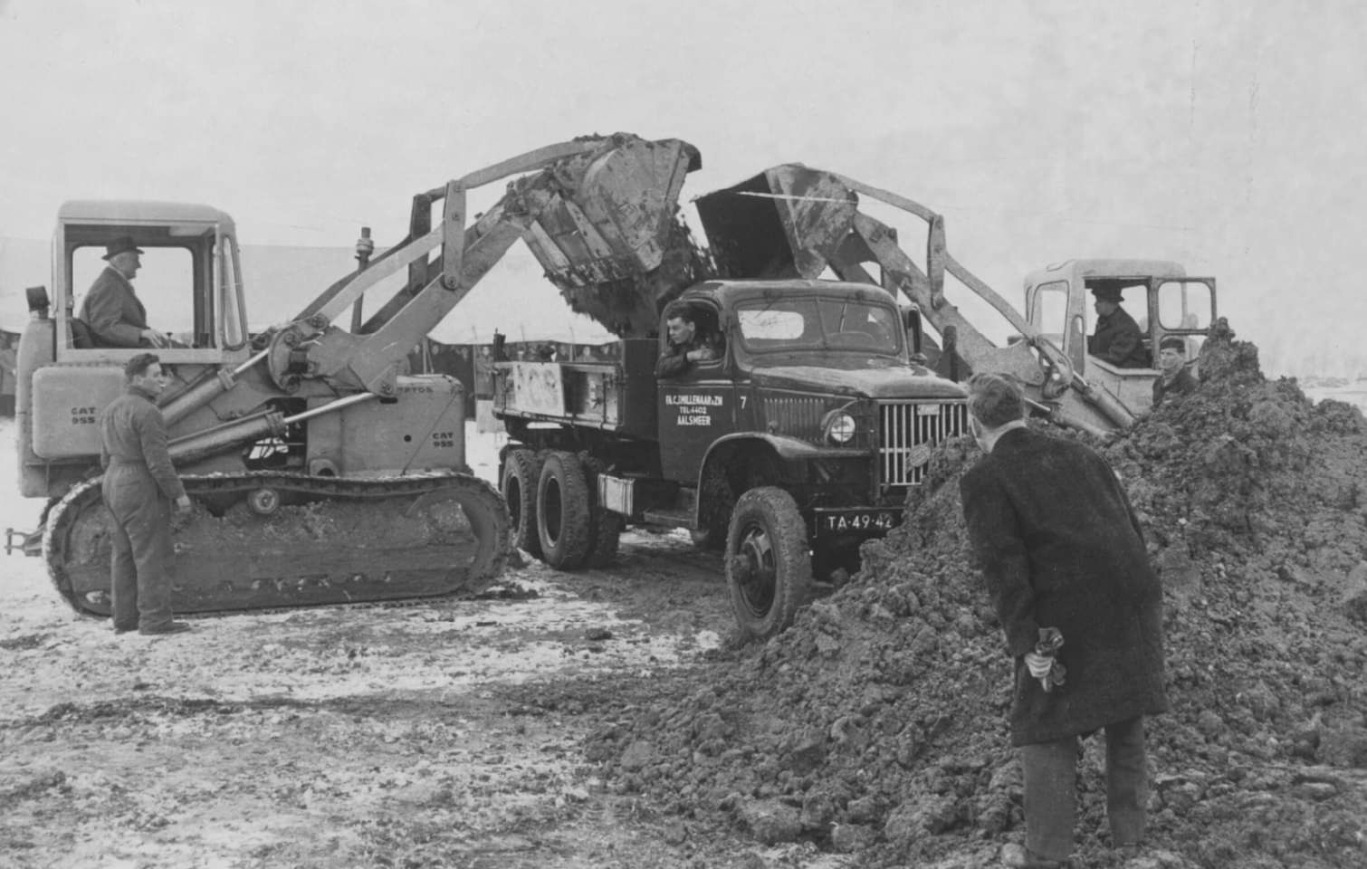 GMC's bij de aanleg van Gouwzeezwembad in Monnickendam (archief Henk Veenendaal, onder mijn aandacht gebracht door Henk Jansen).